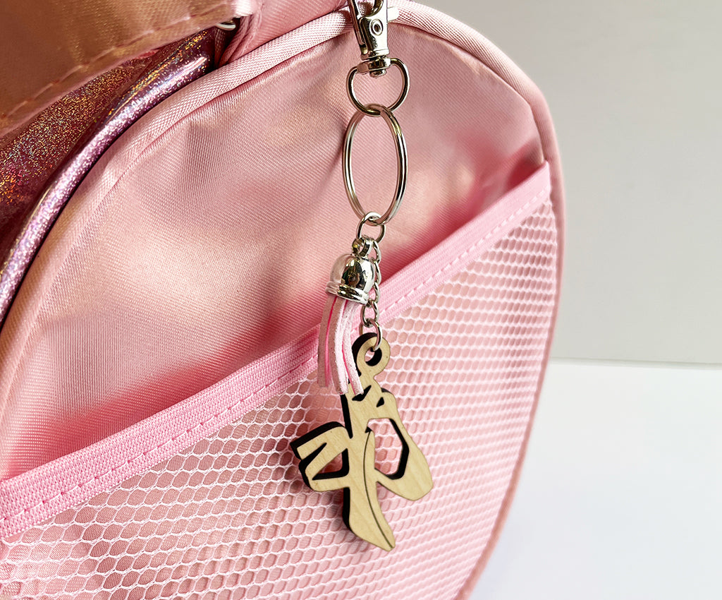 Perfect accessory for any dance enthusiast! Attach to your dance bag, gym bag, school backpack, keys, purse, garment bag, computer bag or where ever you want to show it off. Also great for dance teacher gifts too!