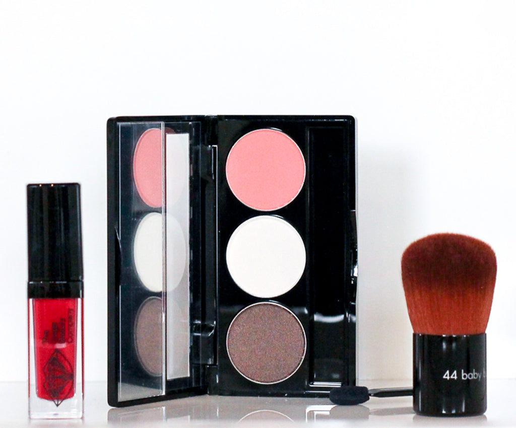 - 3 well palette - 2 shadows (brown & highlight) +blush