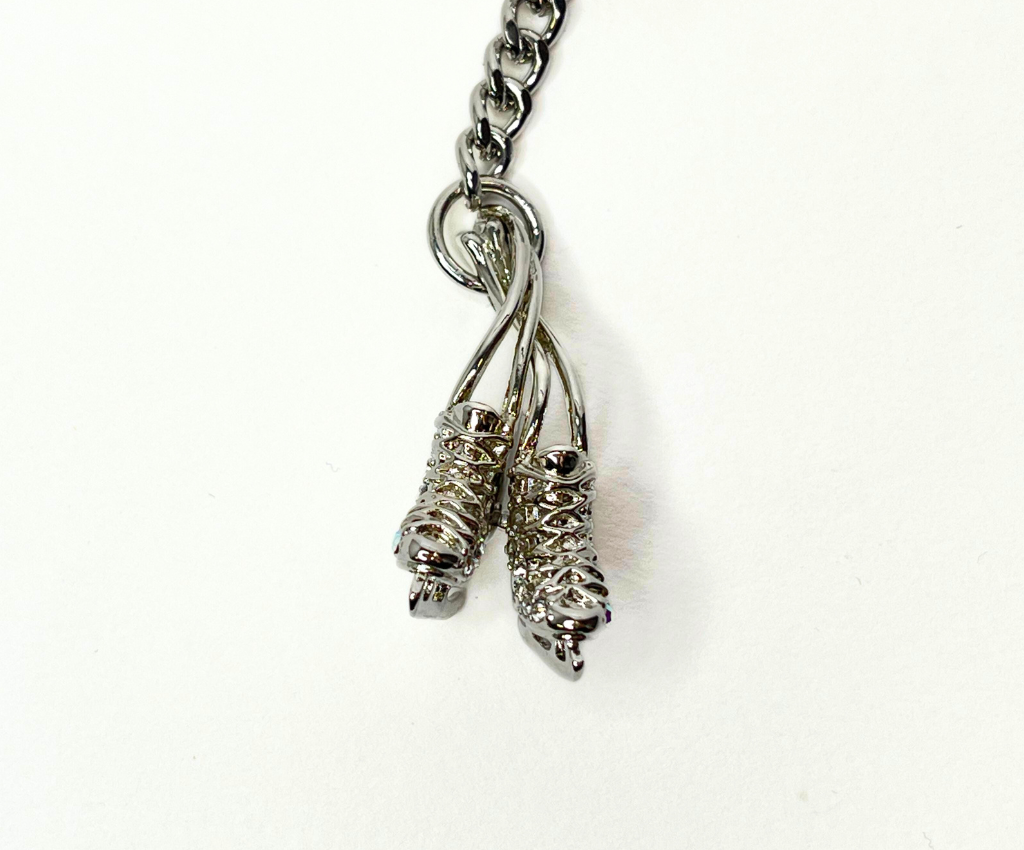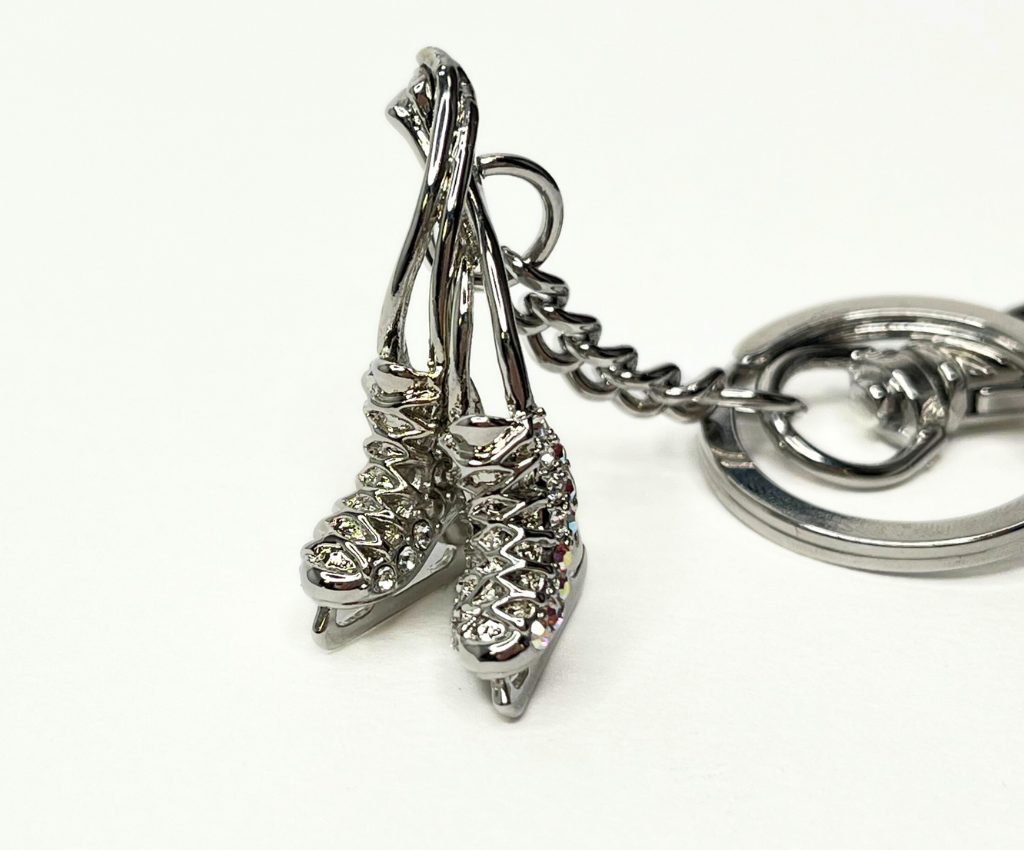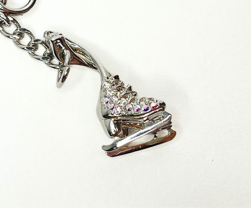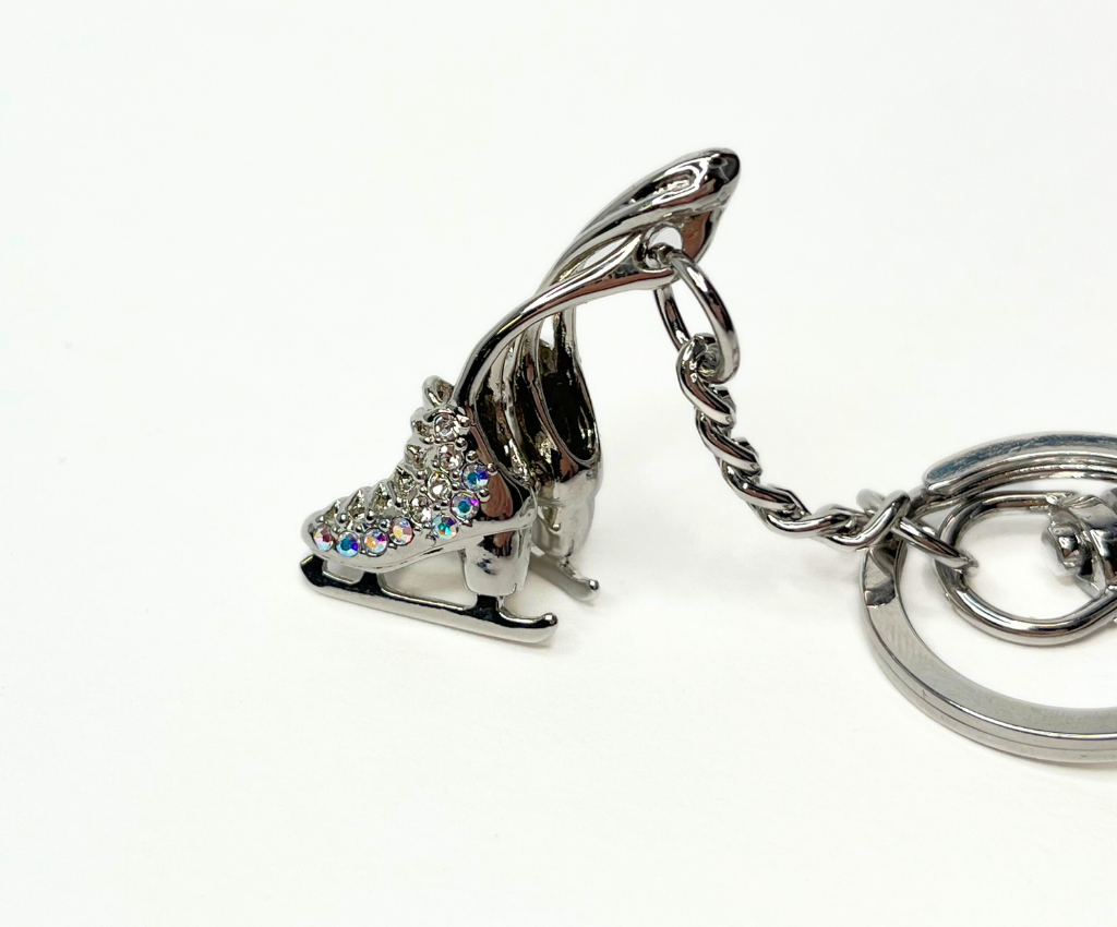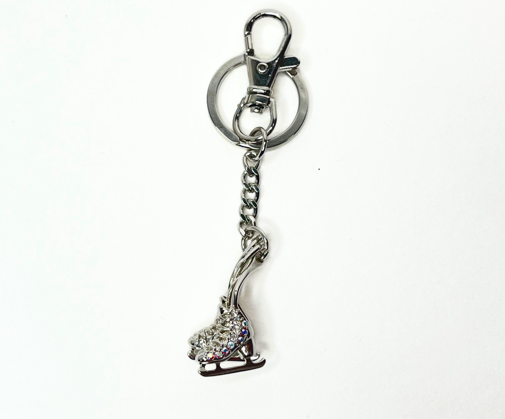 This keychain is the perfect accessory for any figure skater! The detailed design features sparkly gems that add a touch of glamour. Attach it to your keys or bag as a reminder of your passion for skating. A great gift for any figure skating enthusiast!