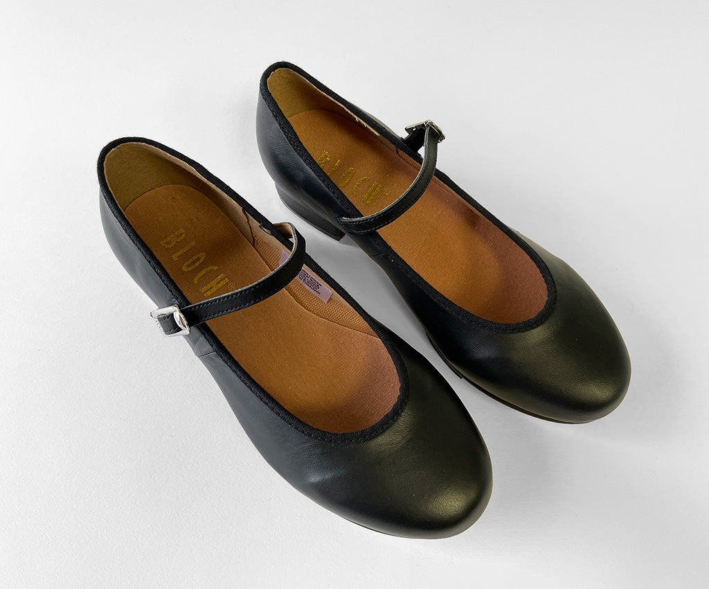 Bloch's TAP-ON is a classic leather upper tap shoe with a buckle closure, a leather full outside and 1" heel.