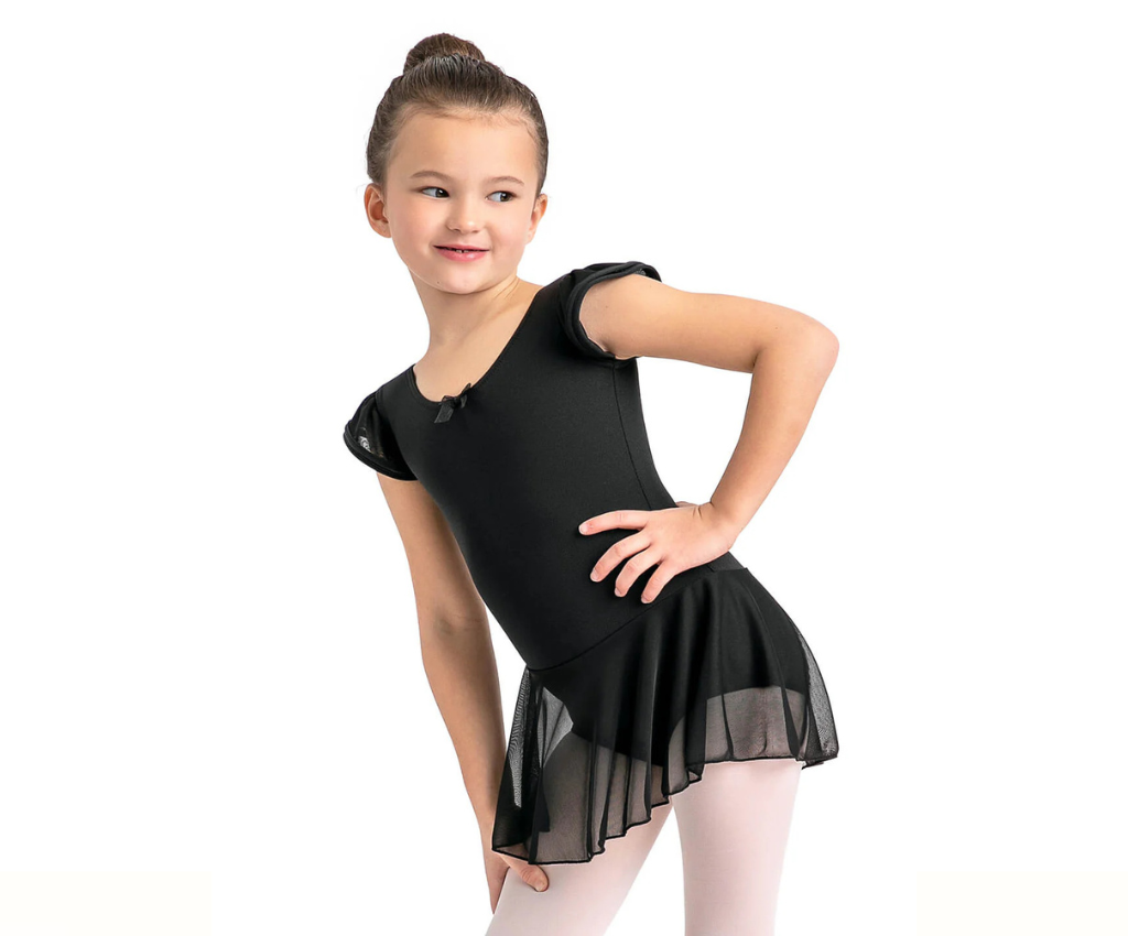 The Flutter Sleeve Dress is crafted for the aspirations of budding ballerinas. The very essence of comfort and grace, this dress is woven with a soft nylon and spandex blend, offering a conforming yet flexible fit. The single layer attached skirt is light as a feather, beckoning twirls and pirouettes with ease, while the delicate flutter sleeves lend an air of enchantment to the design. Fully front lined for added support, this dress boasts a timeless ballet leg line, perfect for performances and classes alike.