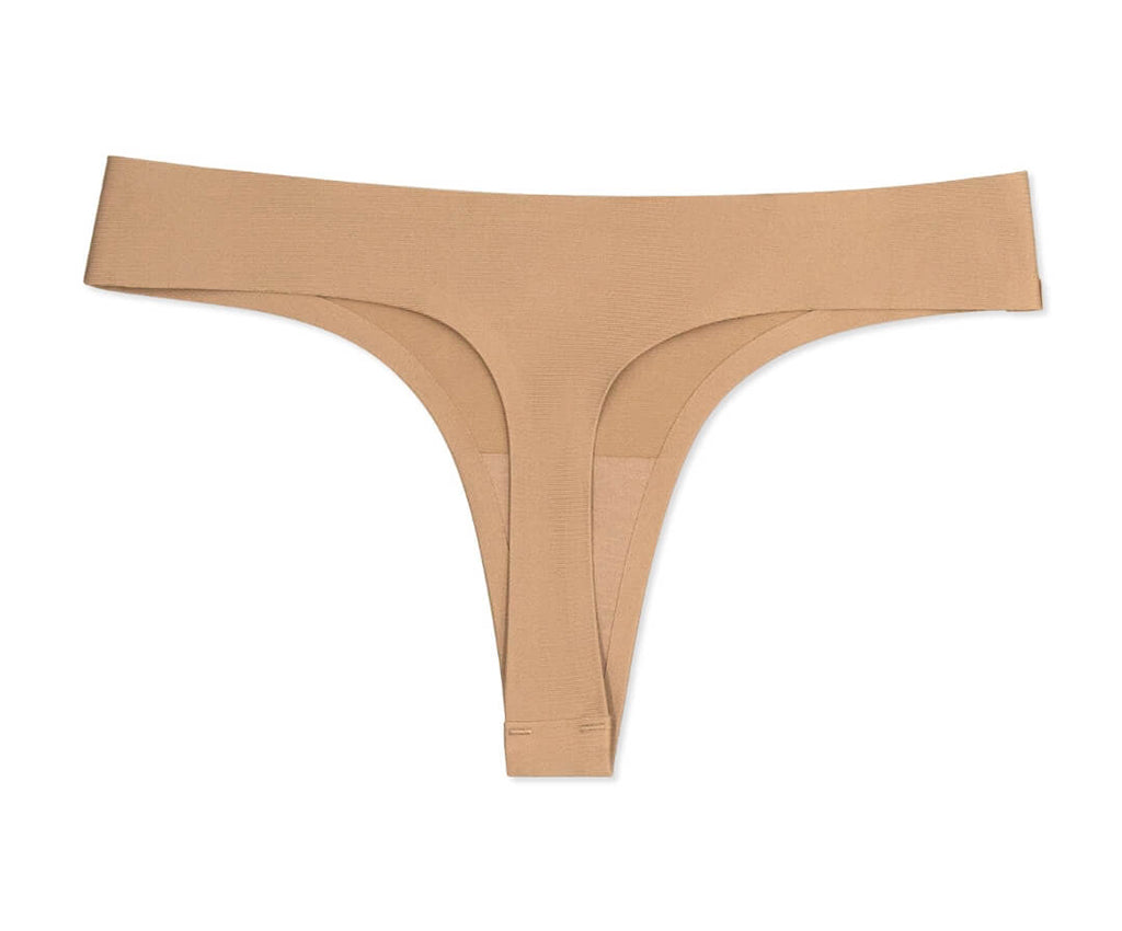 This minimal-show, seamless thong is perfect for underneath leotards and costumes. Featuring bonded waist and leg line seams, this thong will virtually disappear under dancewear, tights, and clothing for a smooth hold on the body and a seamless finish. Comfortable cotton gusset for breathability and hygiene. Available in adult sizes only.