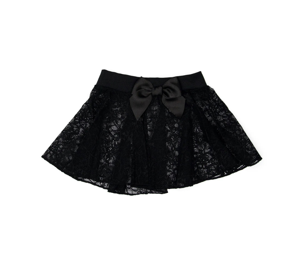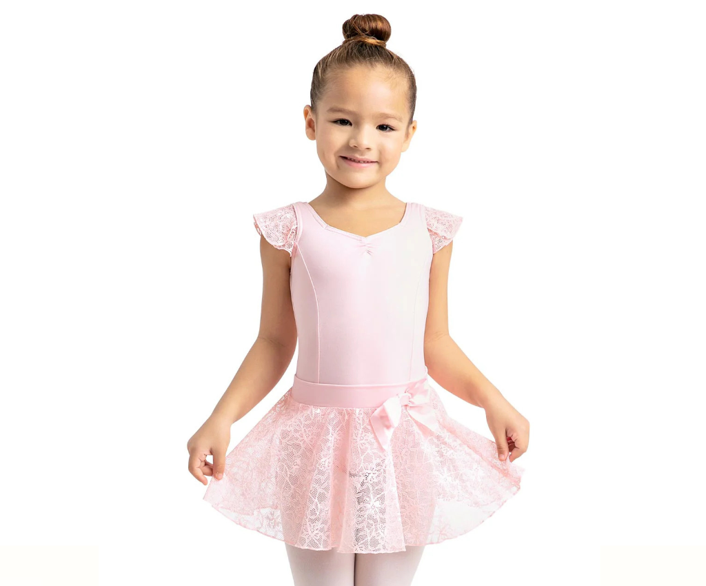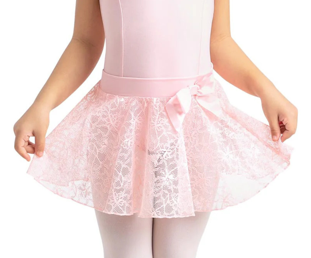Enchantment abounds in Capezio's Pull-On Skirt! With a glimmer of shimmer woven into its elegant lace fabric, this comfortable skirt adds an enchanting touch of whimsy to any ensemble. The satin bow on the waistband provides a sweet touch that elevates the skirt's charm. Featuring a pull-on design, this skirt is a breeze to take on and off, empowering young dancers to adorn themselves with ease.