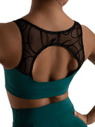 Create regal silhouettes in the Beatrice Bra Top. This tank-style pull-over bra top has a uniquely designed mesh yoke and sweetheart neckline. The circle opening in the back highlights key back muscles with each and every movement.