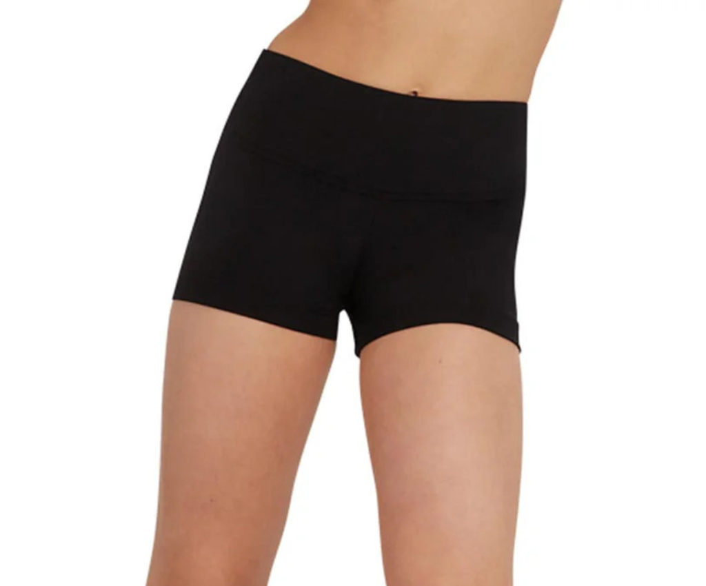 Revitalize your activewear with Capezio's Gusset Short. Made of a nylon and spandex blend that is soft and resilient, these shorts will quickly become your go-to for every class or workout. The wide waistband offers ultimate support and comfort during the toughest of dance routines. Perfect for studio, gym, and everyday wear.