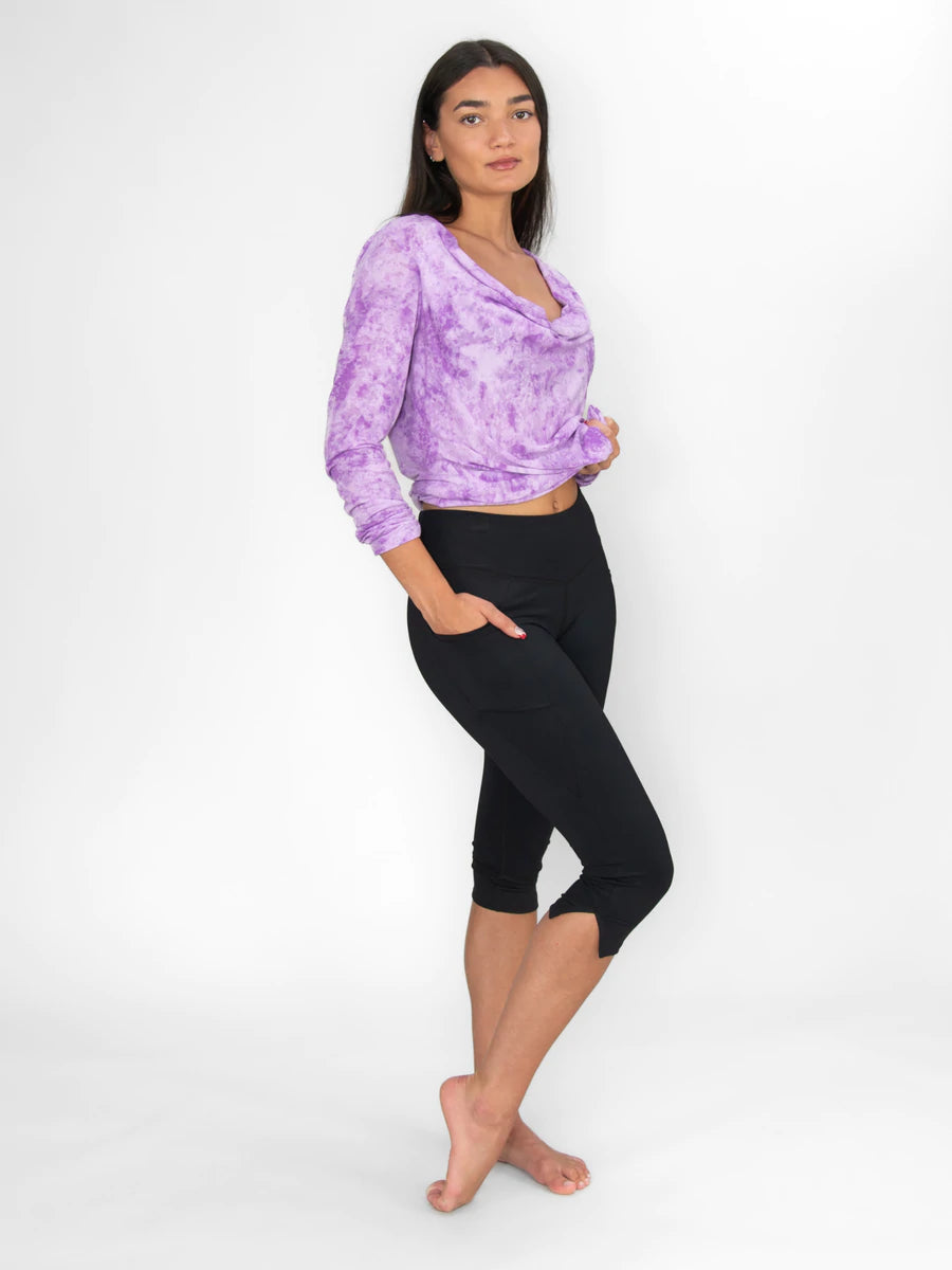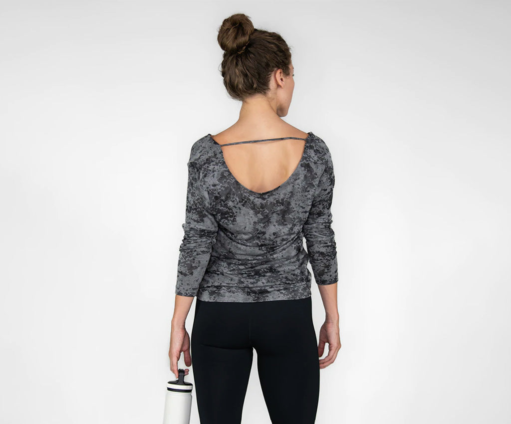 Ultra Soft Burn Out Long Sleeve Cowl Back Top - Casa Zeta-Jones