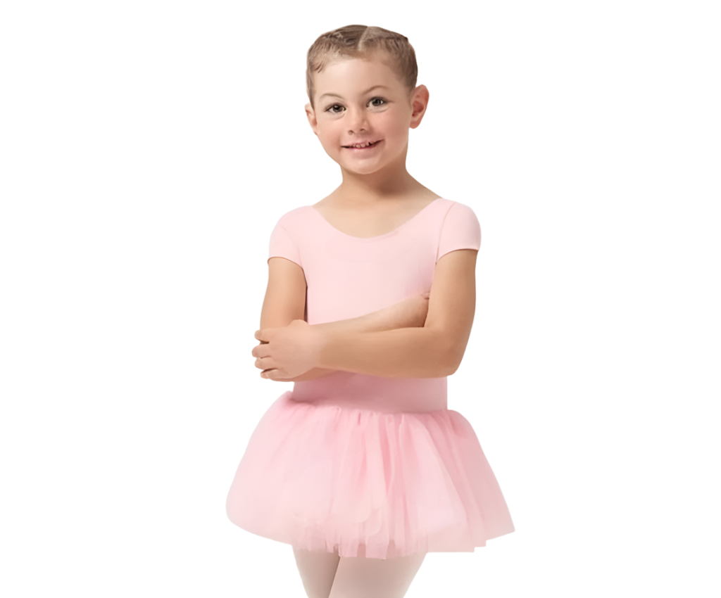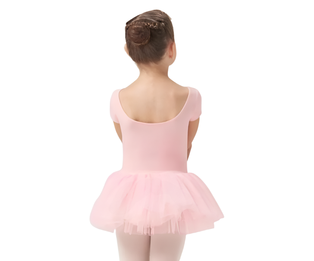 Bloch's Clara Cap Sleeve Glitter Tutu Dress is the cutest spin on a classic design. This cap sleeve leotard features a built in tulle skirt with a glitter overlay for comfort and ease, plus a scoop neck and back for a simple yet stunning design. This leotard is perfect for your little dancers debut!