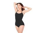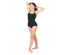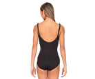 This Bodywrappers leotard has a wide open neckline with matching binding trim. It includes princess seams and adjustable and convertible straps. Straps can also be crossed in the back for a varied look. Memory Stretch front lining.