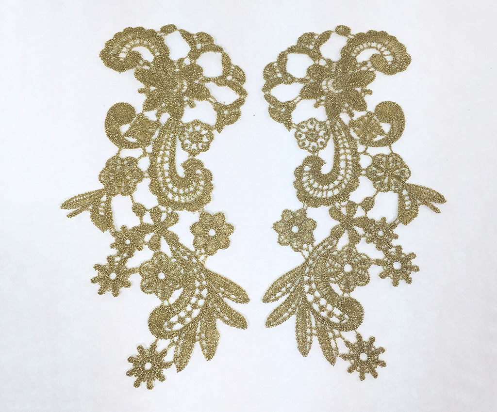 NEW!! Delicate yet dramatic these embroidered appliques are detailed and finished with a sheen to catch the light beautifully. With a combination of flowers and leafy swirls, these appliques measure approximately 7 X 3 1/4 inches each. Sold in mirrored pairs. Professionally packaged to protect product during shipping.