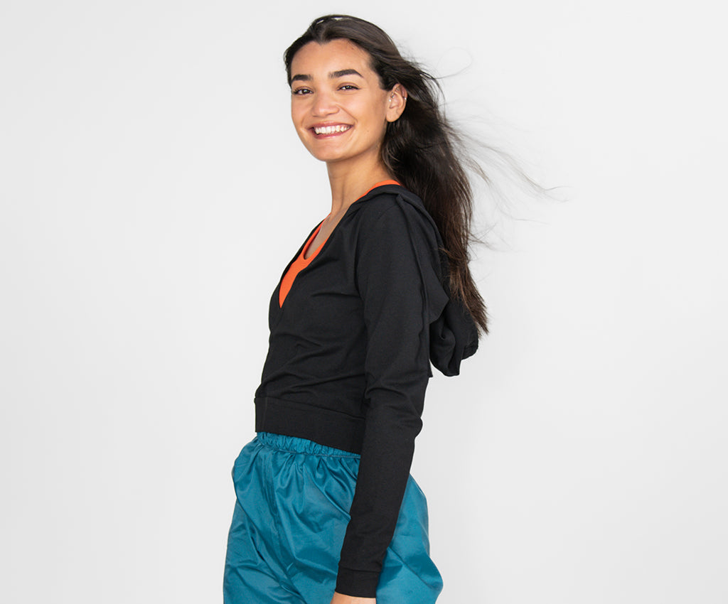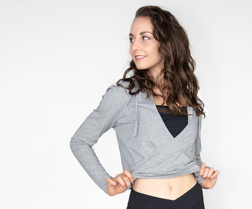 A modern take on a retro dance and fitness warm up layer. It's such a great look and makes the arm line and torso super flattering. Layer it over a leo or bra top, tight tee or bathing suit. Cute, super fun, and very cool. We love this piece so much.