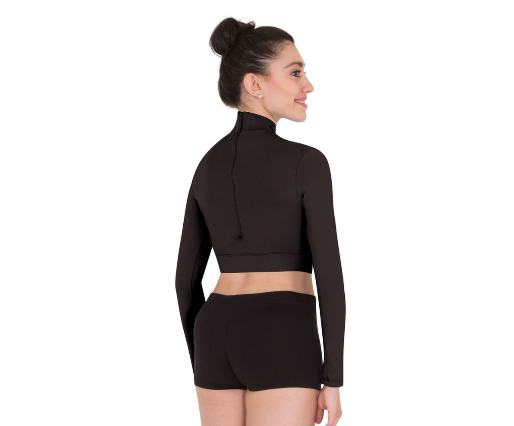 This Bodywrapper's long sleeve turtleneck midriff pullover features a zipper back and an elastic bottom for a secure fit. A great option for costumes with a zipper back that makes costume changes fast and easy!