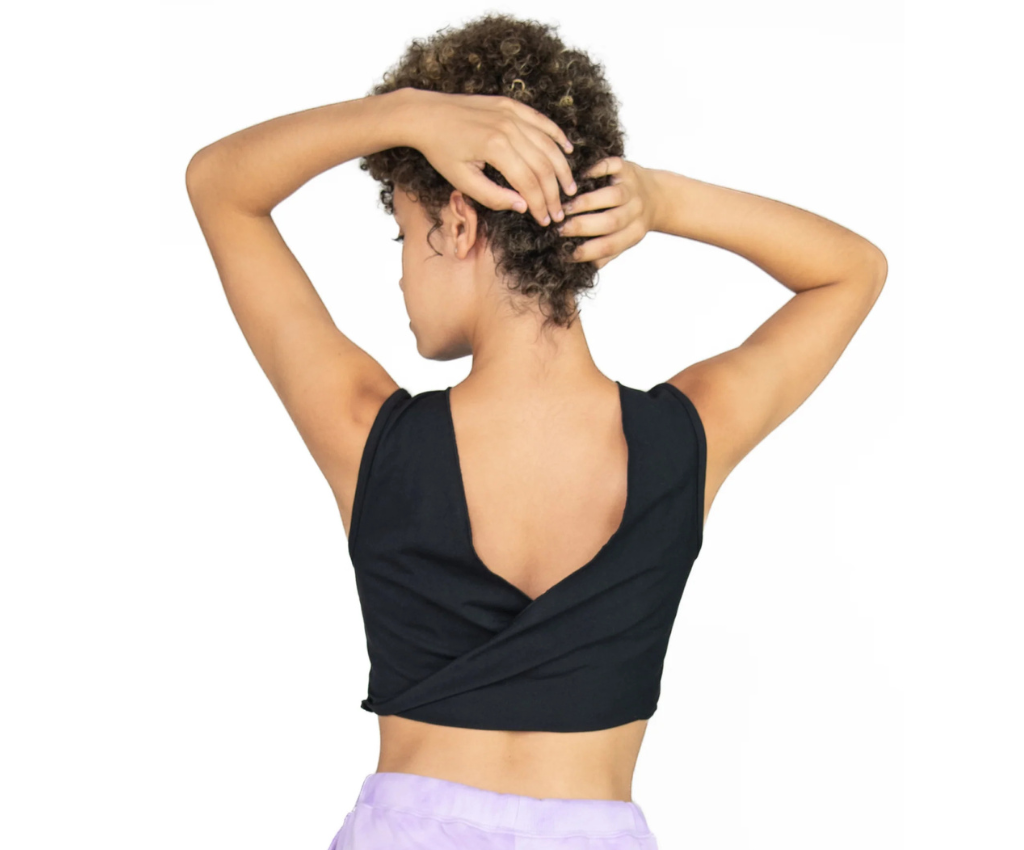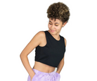 Flip it and reverse it! This little crop tank looks so good either way you wear it. Deep v in the back or front, you can wear this anytime you want to add a bit of cuteness and style to your dance, fitness, or leisure outfit. A soft cotton feel with just enough stretch to make every move super cute. Great for wearing on its own, laying over an activewear top or even a leotard.