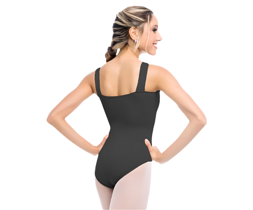 Find your rhythm in this cult favourite leotard. This Leo combines a wide strap camisole design with a pinched front to ensure secureness with a flare of fashion.