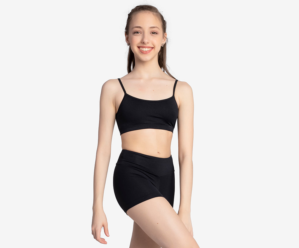 The SoDanca high waist shorts are the perfect bottom for dancers. It features a soft microfiber material, a wide waistband with a narrow elastic at the top and sit at a good length.