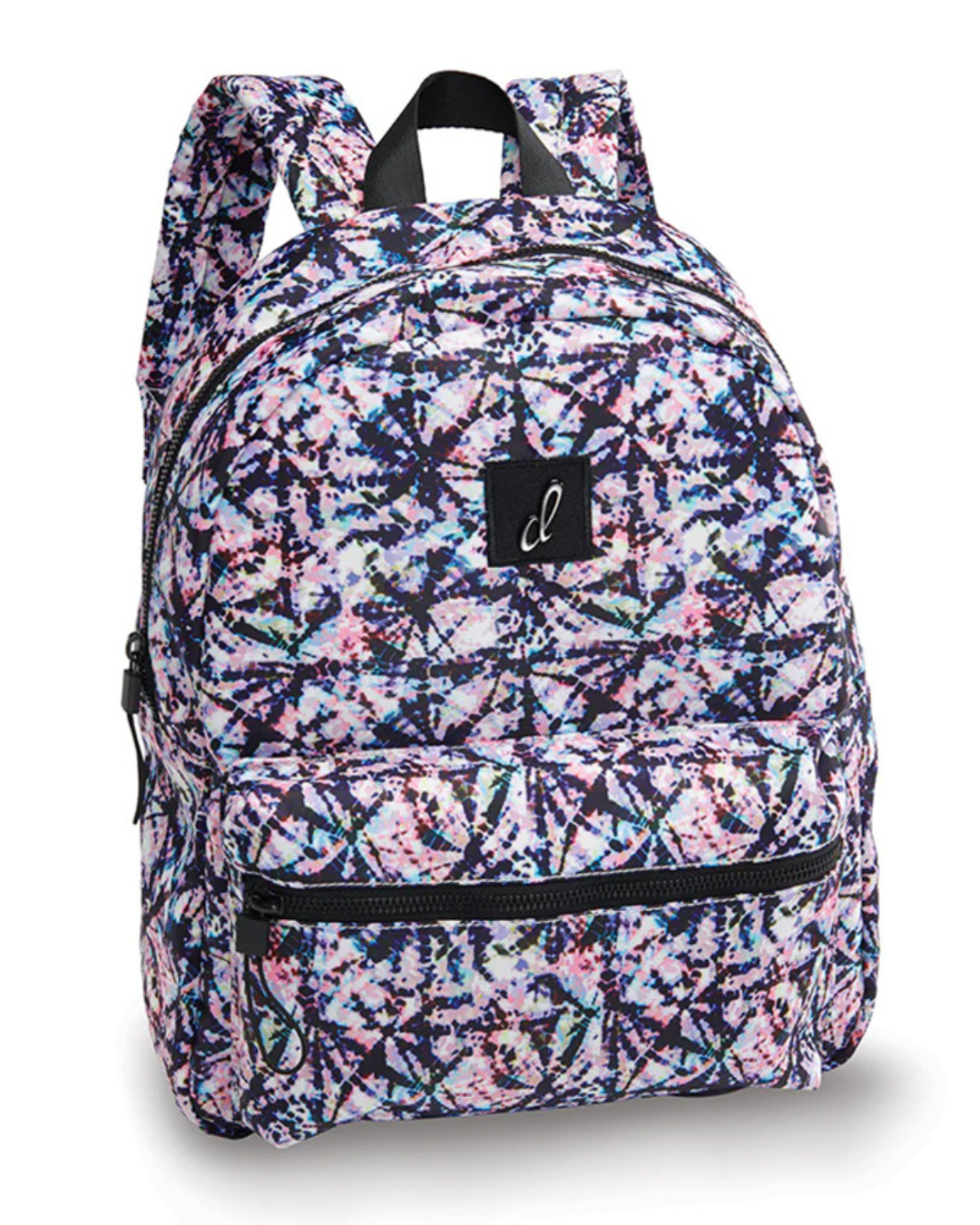 Danznmotion's Tie-Dye Dance Backpack features a spacious front pocket with a zipper opening and a large inside compartment for all your dance accessories. Heavy-duty, water-repellent microfiber nylon backpack that features a wild and fun tie dye print. Shoulder straps are adjustable and padded for comfort. Bag is fully lined, light weight, and folds flat.